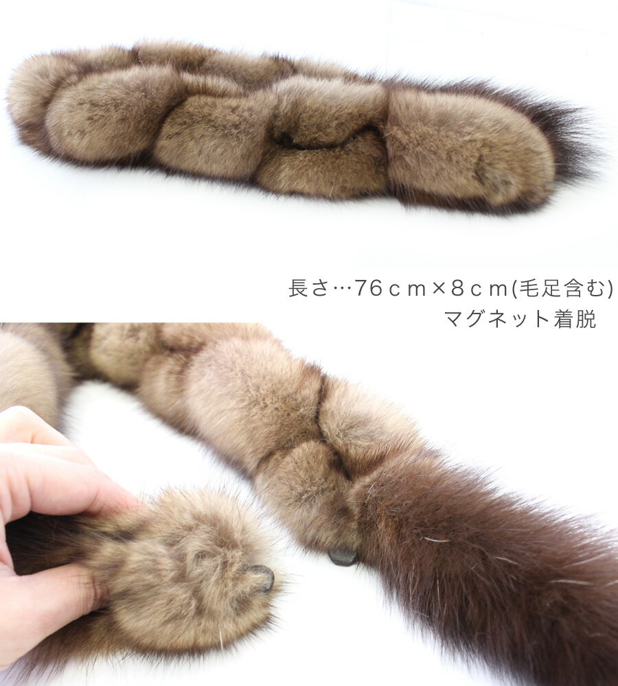 サイズ長さ…約76cm 幅…約8cm 素 材ロシアンセーブル 副素材マグネット 原産地ロシア 製造日本 使用上の注意 この製品は、留め具部分に磁石を使用していますので下記の点にご留意の上お求め下さい。