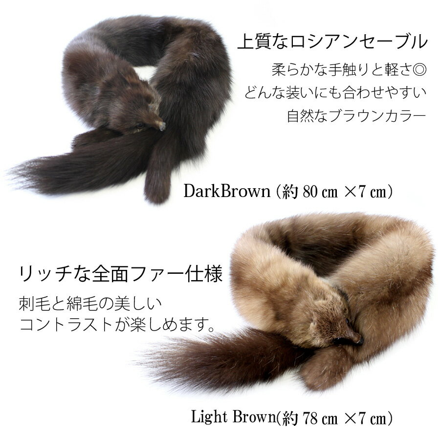 カラーダークブラウン・ライトブラウン 素 材ロシアンセーブル 原産地ロシア 製造日本製 天然素材の為、商品によって大きさ・毛並みの違いがあります。