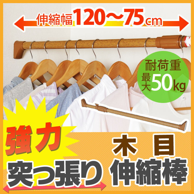 突っ張り棒 伸縮棒 木目 幅75〜120cm 物干し つっぱり棒 突っ張り棒木調強力伸縮棒 H-MNPJ-120 キッチン 洗面台 脱衣所 衣類 洋服 服 整理 収納 玄関 げた箱 スペース 収納棒 トイレ 押入れ 一人暮らし 新生活 アイリスオーヤマ 室内物干し 物干し【TB】【TK】