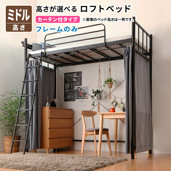 ★ポイントUp4.5倍★高さが選べるロフトベッド Altura アルトゥラ 固綿マットレス付き カーテン・ハンガーポール付タイプ ハイ シングル[1DS][00]